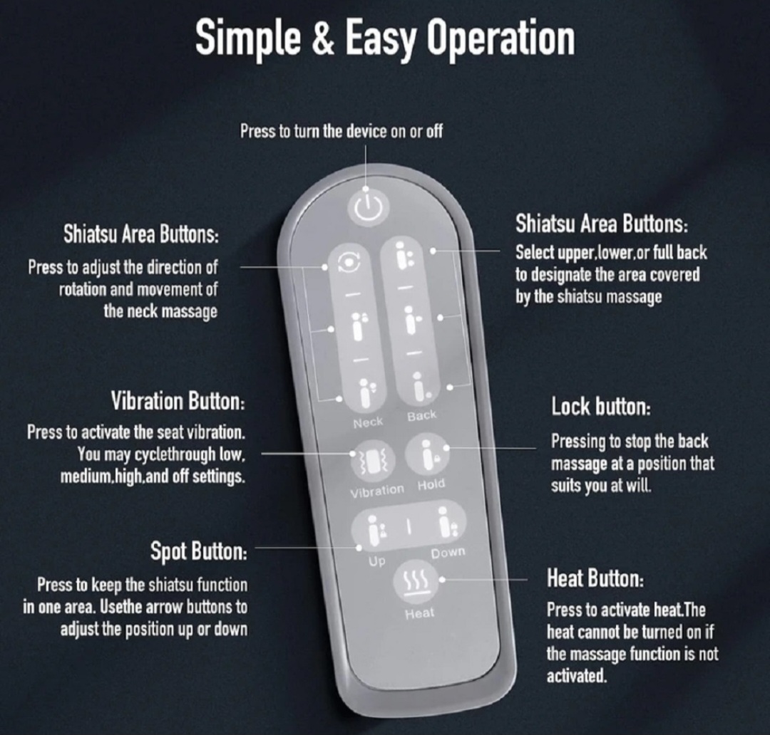عملکرد حرارتی ، ماساژ لرزشی و ماساژغلتکی